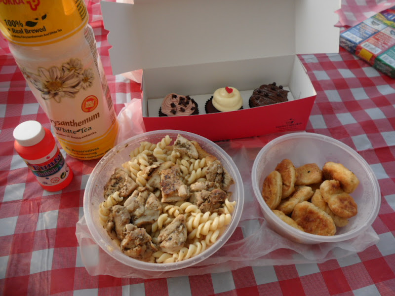 Hello everyone, I'm as happy as a clam on the 20th September 2012 because it marks the day of our third year anniversary. He's constantly showering me with his tender love and that makes me a really happy camper. Ever since I fell in love with him, it seemed that I've been staying in the seventh heaven. I'm just so happy that all sorts of idioms on happiness popped out from nowhere. I would even grin from ear to ear upon looking at the photographs which were taken in the past. Not just that, I would even jumped for joy when I received lovely messages from my beloved boy. That day, I headed off to Babybaby's house to prepare the food for our little picnic session. Due to the time constraint, we merely prepared grilled chicken pasta with nuggets as our only side dish. Besides that, we brought along the three little cupcakes which we had previously bought from Bugis Junction. Why three cupcakes? It's because it's our third year anniversary! We even asked for candle, like a mini celebration for the two of us. At that moment, we were as happy as the fleas in the doghouse. I love you boy. Let's count down to our forth year anniversary together.
